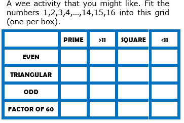 100 square primes.doc 4x4 magic square.pdf Amazing Primes.pdf Column primes.docx Even number problem.docx Exam Questions.docx Factors_primes.ppt Finding the lowest common multiple.pdf Find the Prime Number.ppt Find the Prime Number.pptx Goldbach's conjecture.pdf hcflcmandindiceshmwk.doc HCF LCM Product of primes.pdf Is it prime.pdf June 2013 1MA0-1H - Q5 - Product of prime factors.pdf Magic Square.docx Math - Prime Factorization.pptx Maze 2.pdf Number.Level-5.Types-of-Number.HCF-LCM-Venn-Diagrams.pdf Number.Level-6.Types-of-Number.HCF-LCM-Venn-Diagrams.pdf Overhead master for 1-100 number grid.doc Overhead master for prime number formulae.doc Overhead master for prime numbers up to 210.doc Primarily Primes.doc PRIME1.pdf PRIME2.pdf PRIME3.pdf PRIME4.pdf PRIME5.pdf PRIME6.pdf PRIME7.pdf Prime factor multiple puzzle.png Prime factors.doc Prime_Factor_Search.pdf Prime factors – handy hints.pdf prime factors - hcf - lcm.doc Prime factor trees.pdf Prime information.pdf Prime_Number_Maze.pdf prime or not.pdf Primes and prime factors.doc primes Colour in.docx Primes.docx primes.html~ primes.pdf primes.ppt Primes up to 1000.pdf Primes up to 2500.pdf product of 2 primes.docx Product of prime factors.pdf product of primes.pdf Product of primes starter.docx Sieve of eratosthenes.docx Student Sheet 1 .docx Student Sheet 1 - Prime numbers activity sheet.docx sum of the first 9 prime numbers.docx test for a prime number.pdf